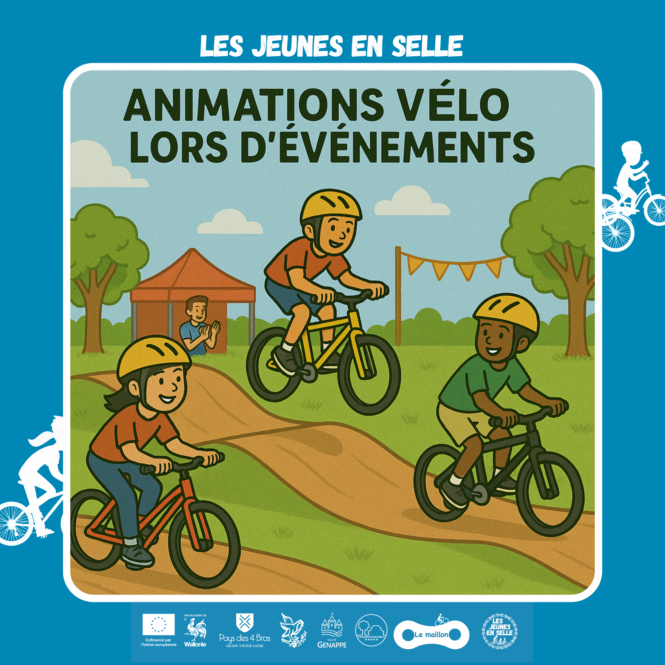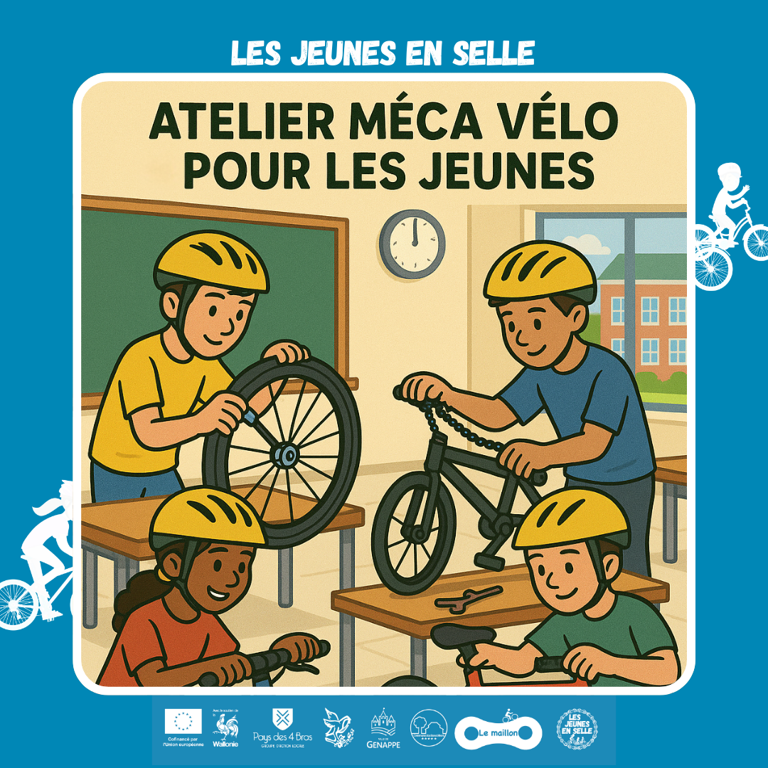 Porté par le Maillon Bikepoint ASBL (acteur reconnu et lieu de rencontre, de réparation de vélos, de partage de connaissances, de création de projets mobilité implanté au cœur de Bousval), le projet “Les jeunes en selle” vise à encourager et à pérenniser l’utilisation du vélo au quotidien par les jeunes. Il entre en continuité avec les actions développées par le GAL du Pays des 4 Bras (de 2018 à 2023) et s’intègre de manière très pertinente aux Plan Communal de Mobilité des 3 communes du Pays des 4 Bras.